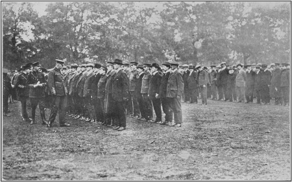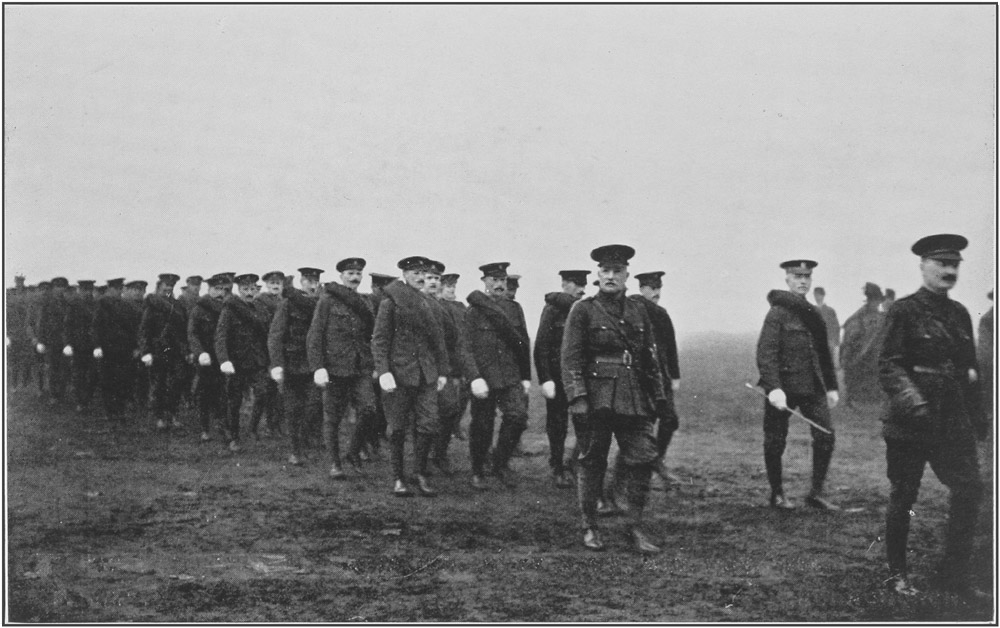 We learnt from them the great difficulties that had to be overcome in raising new units, with very few officers, warrant officers, and N.C.O.'s to lead the new force and instruct them in military routine. Without exception they were filled with admiration of the physique, intelligence, and spirit of the men who had rushed to arms in those dark early days of the war.