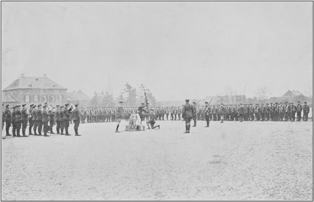 In the offensive operations that lasted from August 21, 1918, to the Armistice, the Battalion delivered many successful attacks with undiminished dash and courage, [7]and it was a proud day when I saw them march through the Square in Duren with fixed bayonets, headed by the few Regimental pipers that had been through the war with them since their formation.