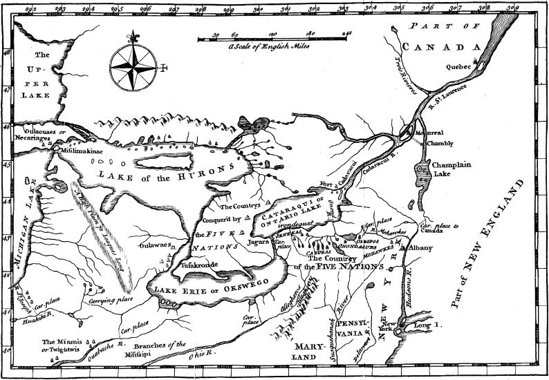 | The English attempt to trade in the Lakes, and the French attack the Senekas. | 71 |